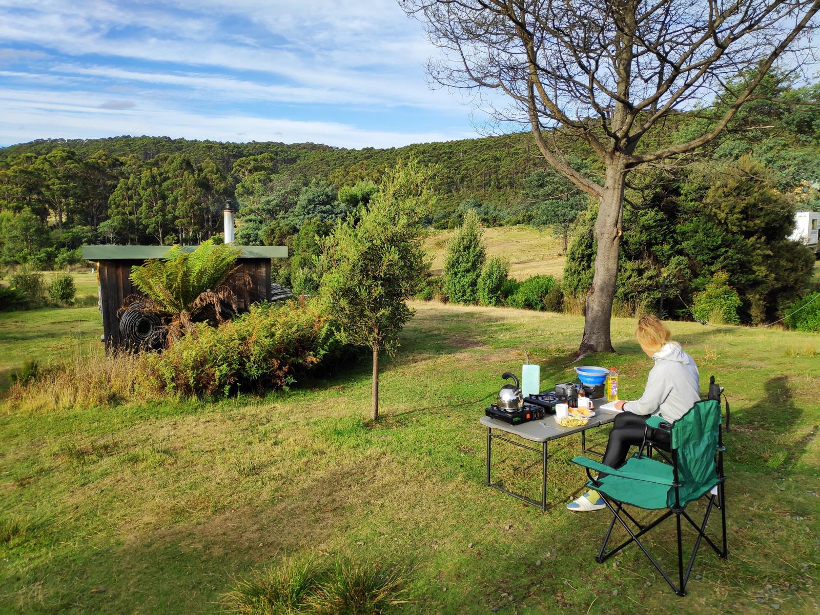 Während wir mit unserem mobilen Zuhause durch fast menschenleere Landschaften fuhren und einer Vielzahl an Wanderwegen nachgingen, hatten wir auch wieder mehr Zeit für unsere Hobbies. Während Olga nach mehreren Jahren wieder mit dem Malen begann, fischte Hannes einen australischen Lachs nach dem anderen aus der tasmanischen See.